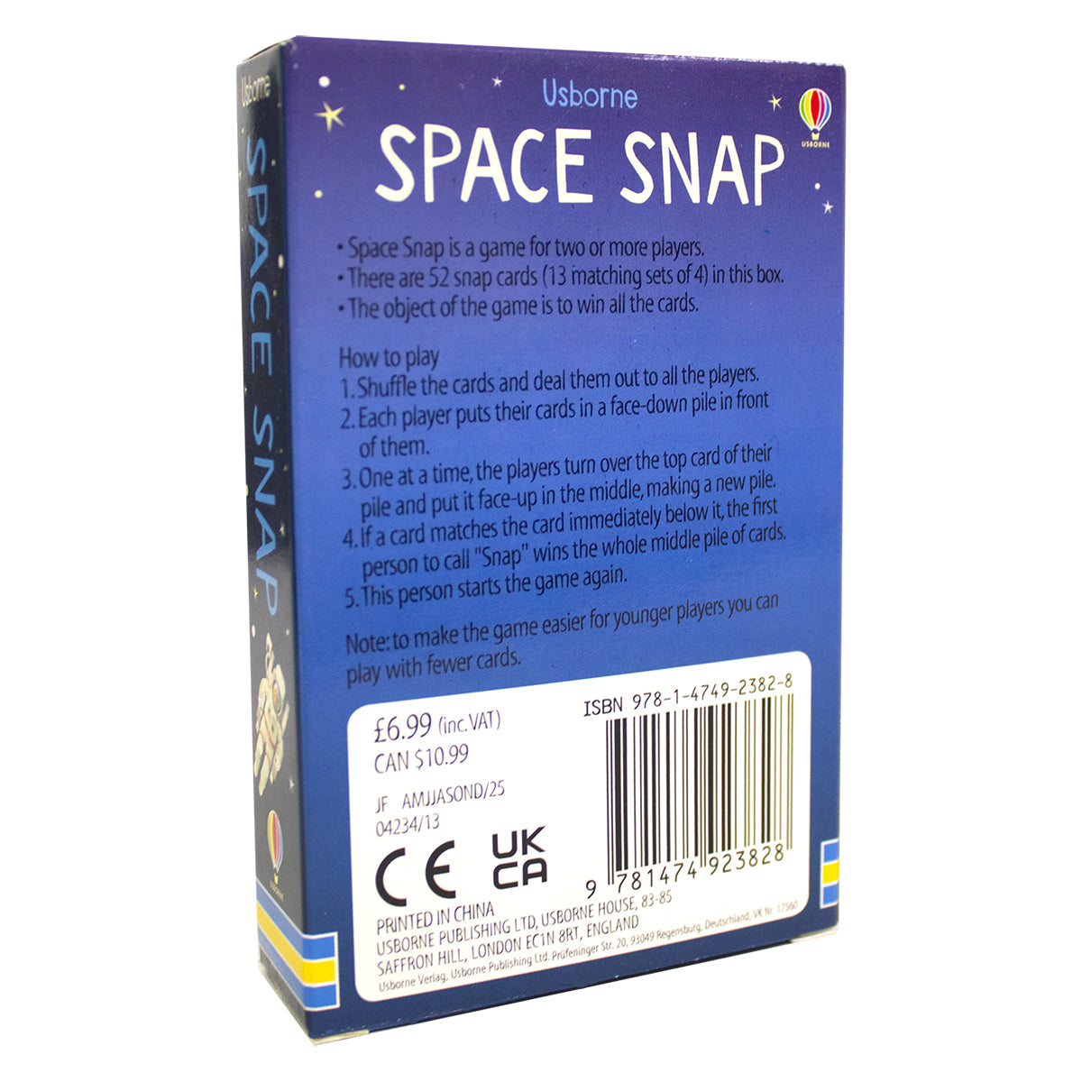 A new addition to the ever-popular Usborne Snap series - Space. Space has never been a more popular topic, and these cool snap cards will be loved by all space enthusiasts. Out-of-this-world illustrations on every card will inspire children to learn more about space. Cards include the International Space Station, Satellite Star C4 1 and the Mars rover Curiosity and more. A handy pack of cards that makes a great gift, souvenir or pocket-money purchase.