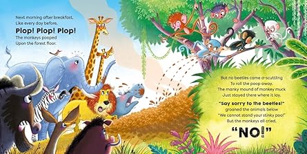 Dung beetles love to chew on other animals’ tasty poo. But when the monkeys make fun of them for having such a stinky lunch, the beetles decide to munch elsewhere.